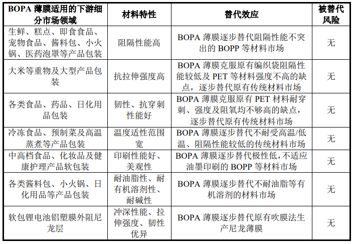 BOPA下游细分市场领域