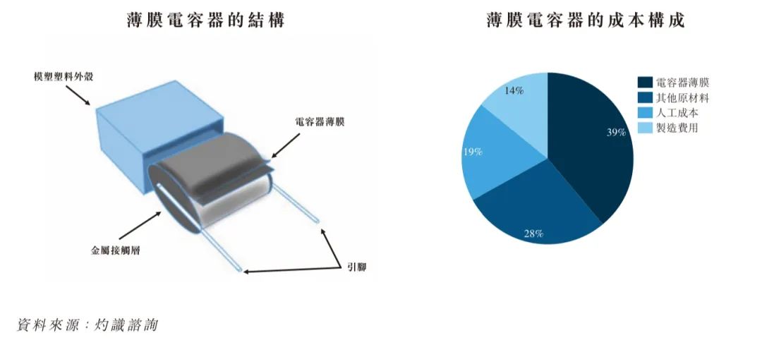 电容器薄膜是以聚合物为基础的薄型介电材料,广泛用于薄膜电容器的生产 神马影视,以在电子电路中起到电气绝缘和能量储存的作用,是薄膜电容器的核心材料,在决定电容器的性能和耐用性方面发挥至关重要的作用,在薄膜电容器的成本构成中,电容器薄膜是最大的一项支出,占总生产成本的39%,约占原材料成本的60%。