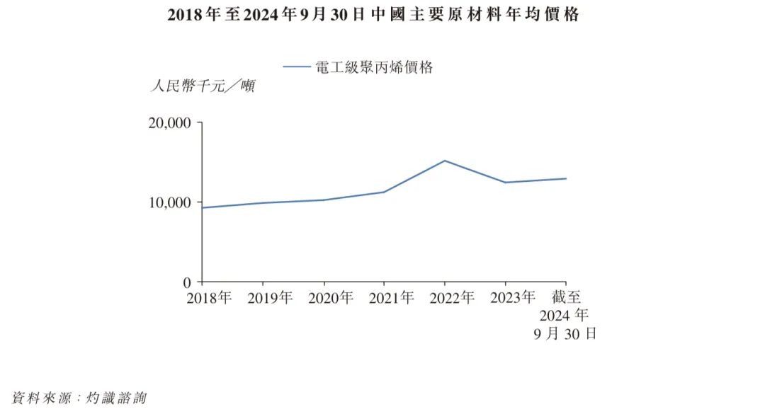 电容器薄膜行业的主要原材料为电工级聚丙烯(PP)。2018 年至2024 年9 月30 日期间,电工级聚丙烯的年均价格呈现波动。波动的主要原因是原油价格的波动,而原油是生产电工级聚丙烯的主要原材料。受俄乌冲突的影响,原油价格在2022 年经历了大幅上涨,之后有所回落并保持相对稳定。